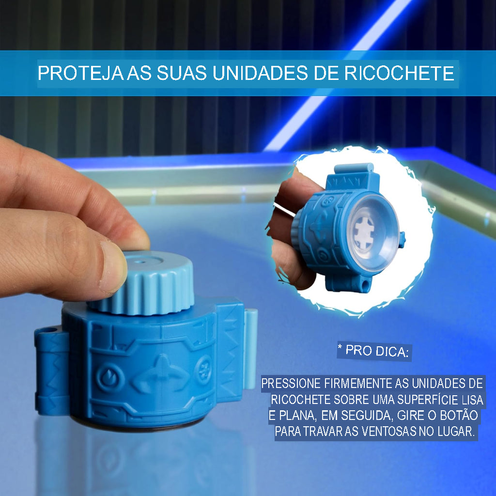A arena muda de formato durante a partida, criando confrontos imprevisíveis. Cada rodada vira um novo desafio para reflexos e estratégia.